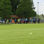 Klar, wenn da mal zwei Männer im roten DFB Trainings Anzug dastehen ist das schon was anderes, das dachten sich auch einige Eltern und besuchten zahlreich das Training. Es war schon fast „Profi“ Stimmung zu spüren. 🙂